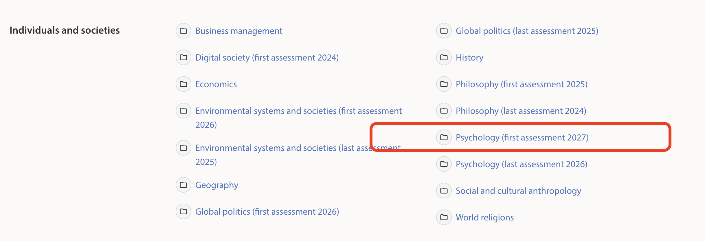 Step Four: Scroll down until you see individuals and societies “Psychology (“first assessment 2027”)