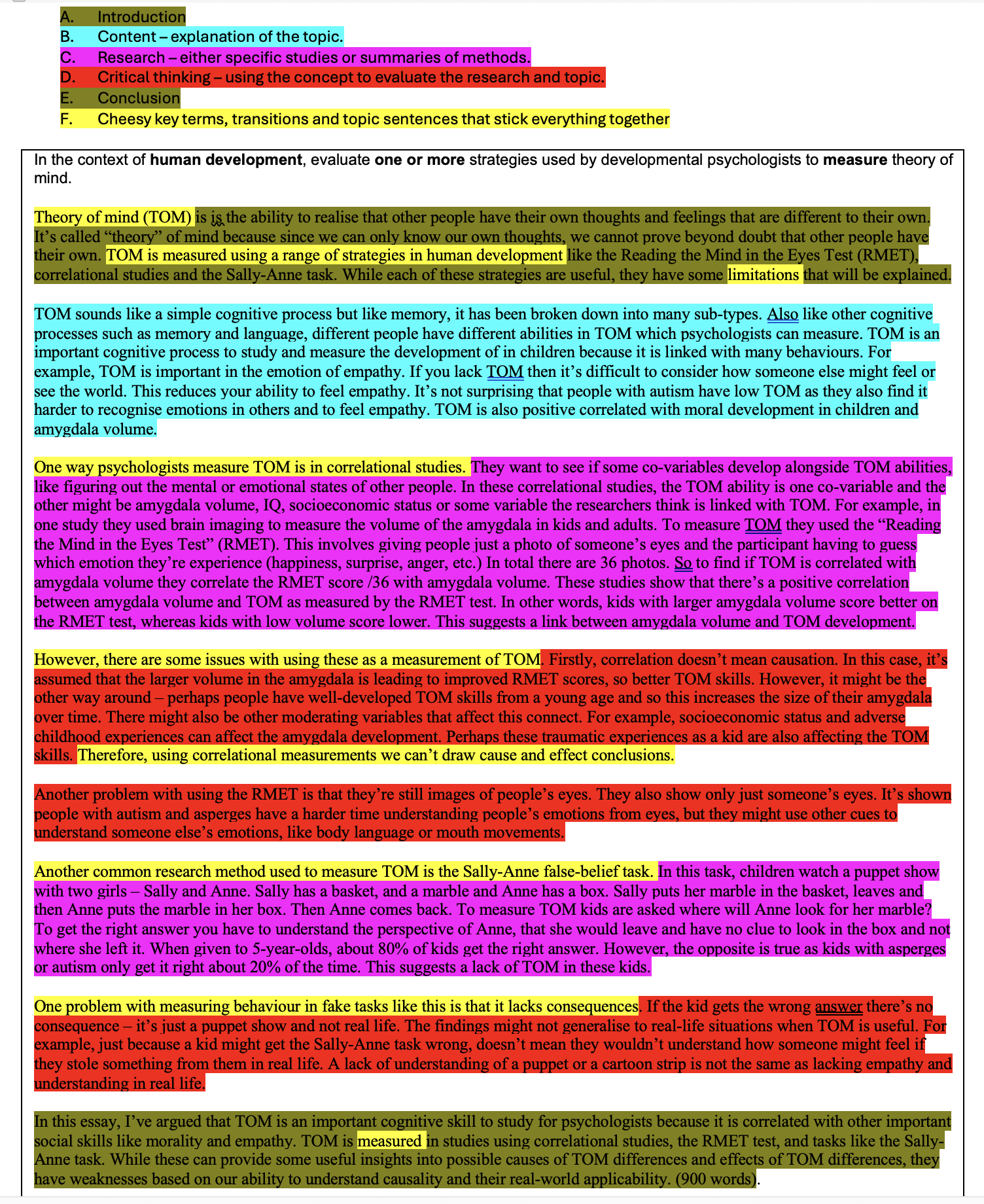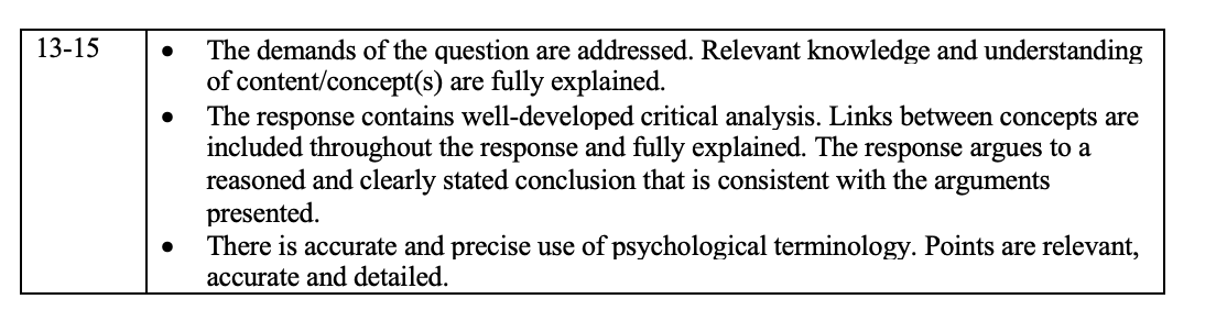Now you’ll notice that it lacks balance on content with the topic. That’s fine for me. I’m aiming for a 11-13 point essay and this would easily score that. In fact, the question doesn’t give us much to say about theory of mind anyway.