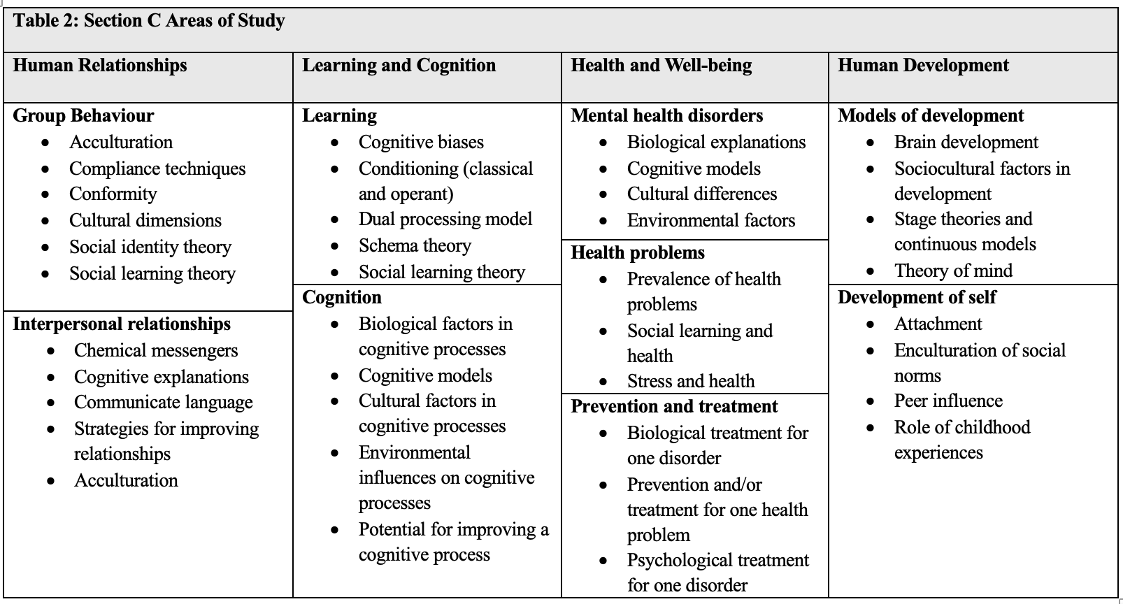 The following strategy will test your readiness for the essay question in Paper 1, Section C of IB Psychology. To review, there will be two essay questions, both from different contexts. The question will combine an area of study (topic) with one of the six concepts (bias, perspective, measurement, causality, change, and responsibility). With 38 topics and 6 concepts, that makes 228 possible essay questions minimum. However, this simple strategy can be a good way to prepare for any question.