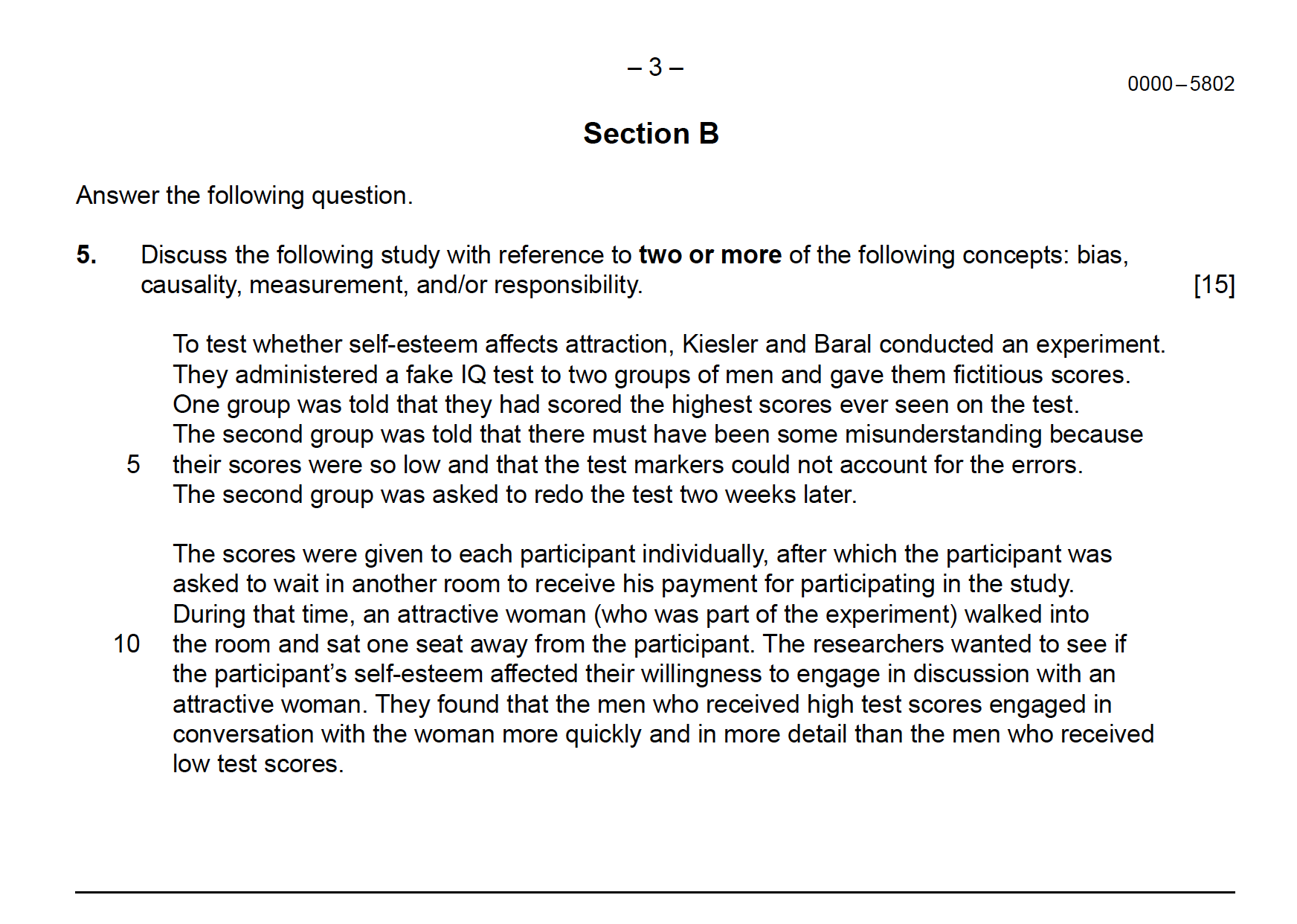 a. Students take one of the studies they’ve found and write a brief summary of their study. This should match what they will find in Paper 2, Section B (see spec paper below). You may want to make them print out their studies and write their summaries by hand. This will ensure they’re actually reading the research and summarising it themselves, rather than ChatGPT-ing it.